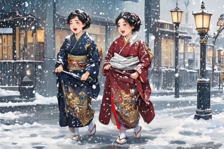 雪の降る成人式大変だったと思います。 そんな成人式をパロディー風にしてみました。 AI生成画像をお届けします・・・(*^-^*)