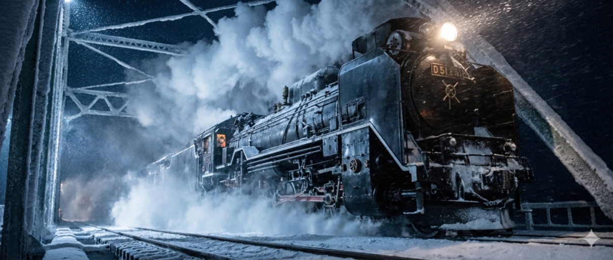 AI生成画像をお届けします。 蒸気機関車D51で〜す・・・!(^^)!