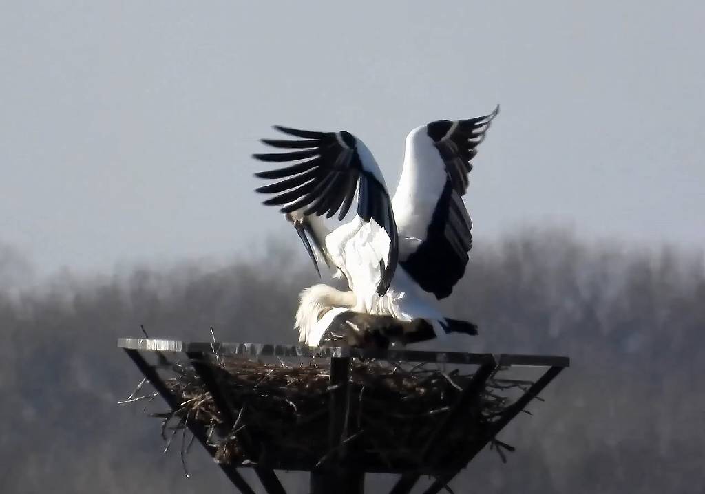 コウノトリ、春になると画像のような 繁殖のシーンがみられます。