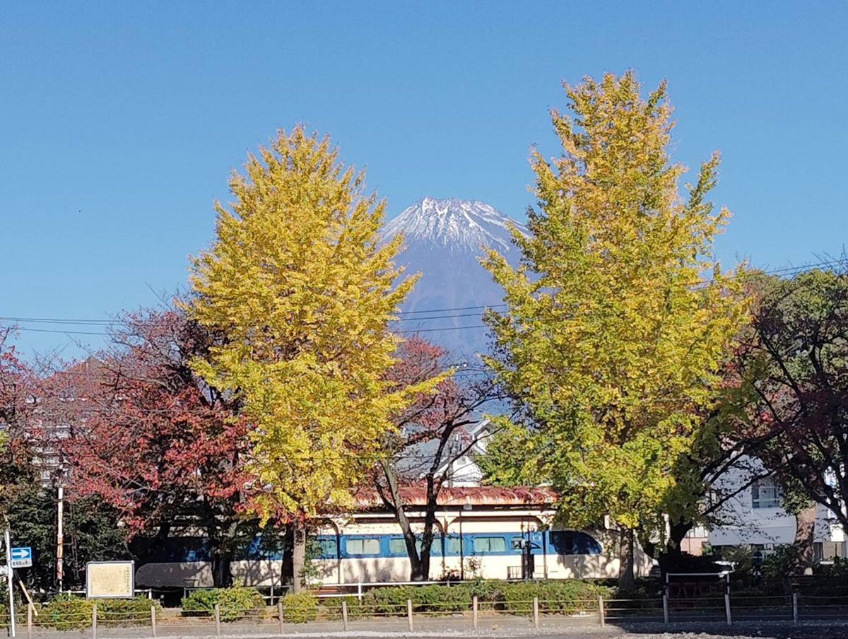 今日は、女房のアッシーさんで病院や買い物に行ってから散歩してきました。あっという間に午前中が終わってしまいました。そして天気が良く、散歩中の気温は18℃で暖かかったです。その散歩の時の公園の銀杏の黄葉と富士山です。